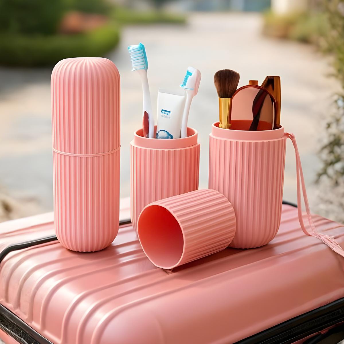 (2 Adet) Seyahat Pratik Diş Macunu ve Fırçası Kabı
