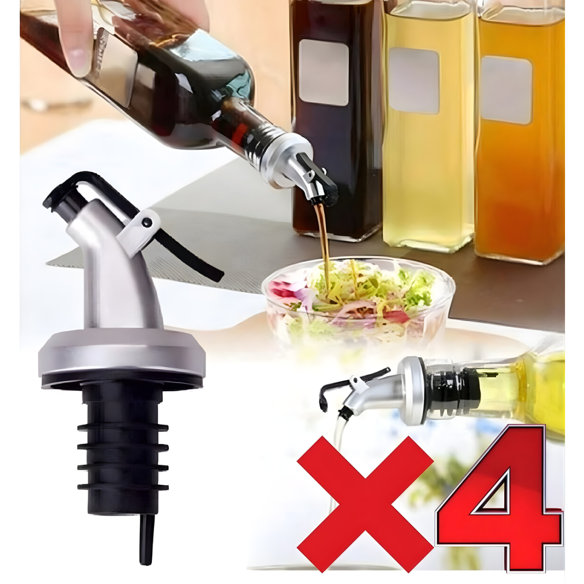 4'lü Kapaklı Damlatmaz Yağ Tıpası Yağdanlık Şişe Ucu Yağlık Sirkelik Sosluk Damlatmaz