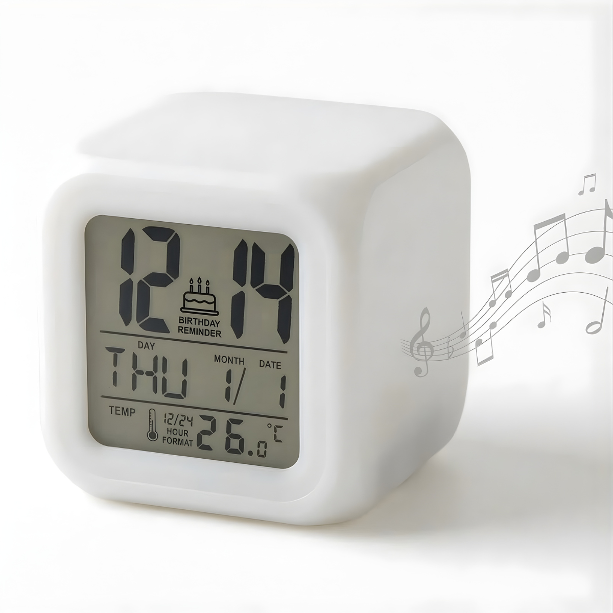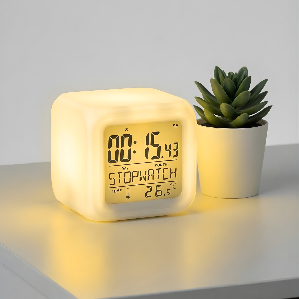 7 Renk Değiştiren Çocuk Odası Alarmlı Küp Çalar Saat