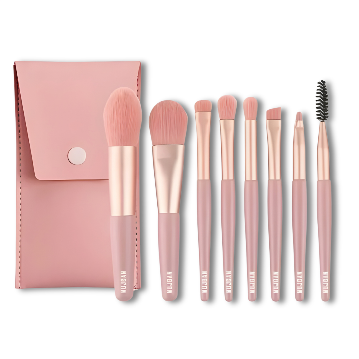 8'li Kiremit Renkli Fırça Pembe Kılıflı Makyaj Fırça Seti