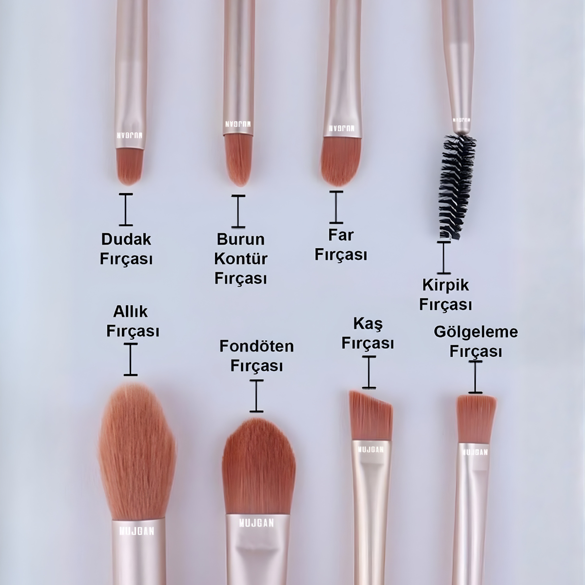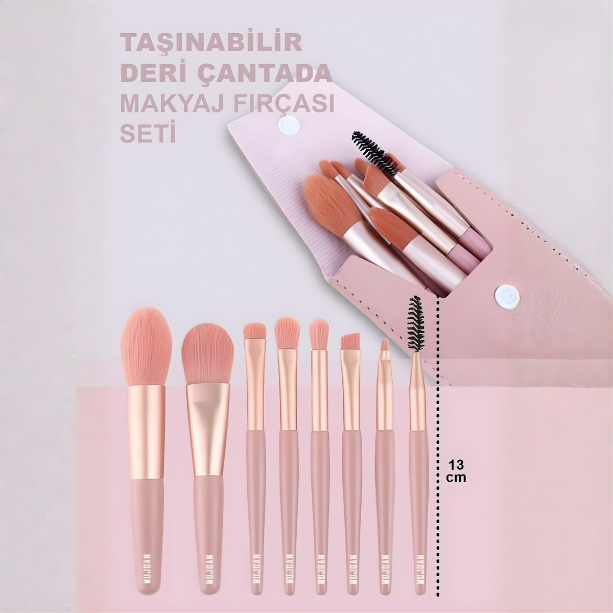 8'li Kiremit Renkli Fırça & Kılıflı Toz Pembe Deri Çanta Seti Her türden makyajı yapmak için özel baş fırçaları ile mükemmel makyaja her zaman hazırsınız Ürün İçeriği ; 1 Adet Kılıflı Toz Pembe Deri Çanta 15 cm 1 Adet Fondöten Fırçası 12 cm 1 Adet Allık Fırçası 12 cm 1 Adet Kaş Fırçası 12 cm 1 Adet Göz Pınarı Fırçası 12 cm 1 Adet Eyeliner Fırçası 12 cm 1 Adet Far Fırçası 12 cm 1 Adet Büyük Far Fırçası 12 cm 1 Adet Far Karıştırma Fırçası 12 cm ;