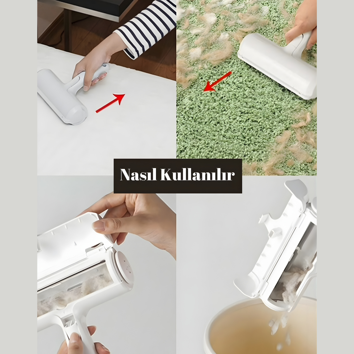 Hazneli Kedi Köpek Evcil Hayvan Kazak Kıyafet Elbise Halı Yatak Tüy Temizleyici Kıl Toz Toplayıcı