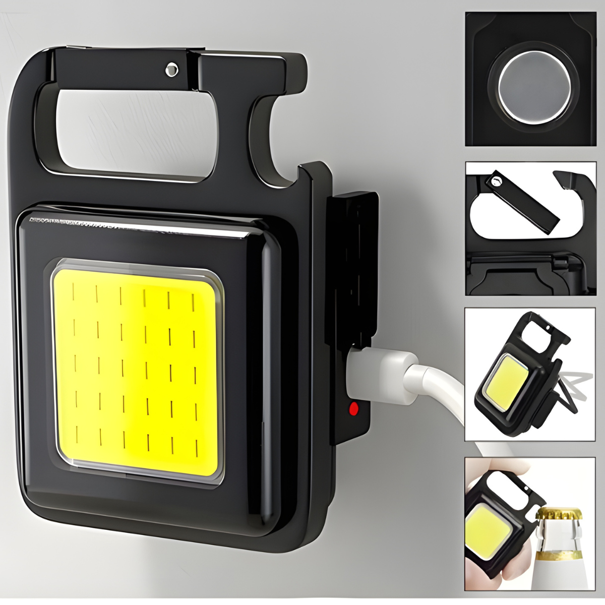 Mini Led Anahtarlık Işık Çok Fonksiyonlu USB Şarj Edilebilir Çalışma Işığı Ultra Parlak Gösterme Pro Küçük LED El Feneri Şarj Edilebilir Anahtarlık Mini El Feneri Modları Balıkçılık Yürüyüş Beyaz Led Mini El Feneri Şarj Edilebilir Parlama COB Anahtarlık Işık USB Şarj Acil Durum Lambası LED Çalışma Kamp Acil Durum SOS Mini LED El Feneri Çalışma Işığı Taşınabilir Cep El Feneri Anahtarlık Lambası Yüksek Güçlü Led El Feneri USB Şarj Edilebilir Lamba Güçlü Manyetik COB Çalışma Işık Açık Kamp Ledi Çok fonksiyonlu ışıklı anahtarlık kamp feneri Mini LED anahtarlık ışık ışıklı anahtarlık USB şarj edilebilir açık kamp feneri ; LED anahtarlık ışık taşınabilir cep feneri USB şarj edilebilir Mini el feneri açık kamp balıkçılık çalışma ışıkları için yakıcılar; Mini el feneri anahtarlık LED ışık cep LED çalışma ışığı yüksek güç LED el fenerleri 4 modları USB şarj ışığı tirbuşon; Özellikleri:1. Dört aydınlatma modu vardır: güçlü ışık - orta ışık - flaş - uzun basın süper parlak.2. Bir şişe açacağı olarak kullanılabilir ve metal yüzeylere sabitlenebilen manyetik bir taban tasarımı ile donatılmıştır.3. Dahili şarj edilebilir pil 1-4 saat sürebilir.4. Yürüyüş veya günlük kullanım için idealdir.; 1. Yüksek kaliteli alüminyum alaşımından yapılmış, hafif, iyi dokulu, güçlü ve dayanıklı.; 2. Çok fonksiyonlu tasarım, acil durum ışıkları, muayene ışıkları, balıkçılık lambaları vb. Olarak kullanılabilir ve ayrıca bir şişe açacağı olarak da kullanılabilir.; 3. Çeşitli kullanım şekilleri, arka kısım ayarlanabilir bir braket ve bir mıknatıs ile birlikte gelir, masaüstüne koymayı veya herhangi bir demir nesneye takmayı veya kullanım için asmayı seçebilirsiniz.; 4. Dağcılık asma toka tasarımı. Bu hızlı asılı toka ile sırt çantalarına, kemerlere, anahtarlara veya tokayı asmak istediğiniz her yere asabilirsiniz.; 5. Çok küçük ve taşınabilir, çok pratik, kendinize veya ailenize ve arkadaşlarınıza hediye olarak çok uygun.; Ürün malzemesi: Alüminyum alaşım; Ürün boyutu: 6 * 4.2cm / 2.4 * 1.65 inç; LED türü: COB ışık yayan diyot; Pil tipi: 500mAh lityum pil; Aydınlatma modu: yüksek-orta flaş; Şarj süresi: yaklaşık 5h; Zamanı kullan: yaklaşık 3h; Su geçirmez: yağmur geçirmez (suya koyamaz); Maksimum ışınlama mesafesi: 10m/32.8ft; Çıkış: 500mA;