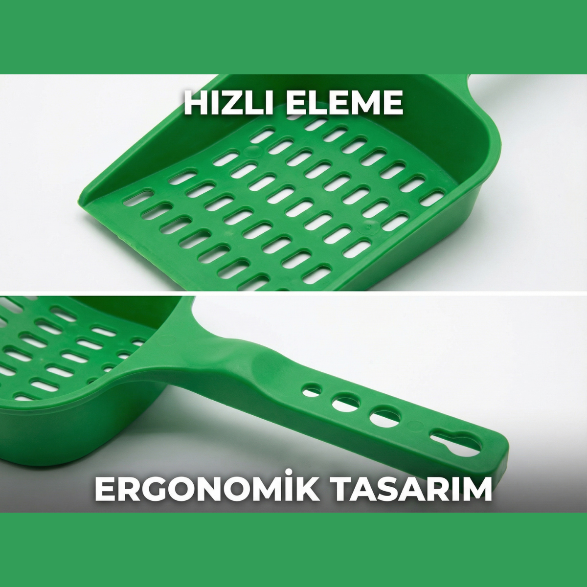 - Kedi kumu temizliğinizi kolaylaştıran pratik ve kullanışlı bir araçtır.; - Kedi kumunuzu hızlı ve etkili bir şekilde temizlemenize yardımcı olur.; - Ergonomik tasarımı sayesinde rahat bir kullanım sunar.; - Kedi kumunu toplamak için ideal bir çözümdür.; - Dayanıklı malzemeden üretilmiştir, uzun ömürlü kullanım sağlar.;
