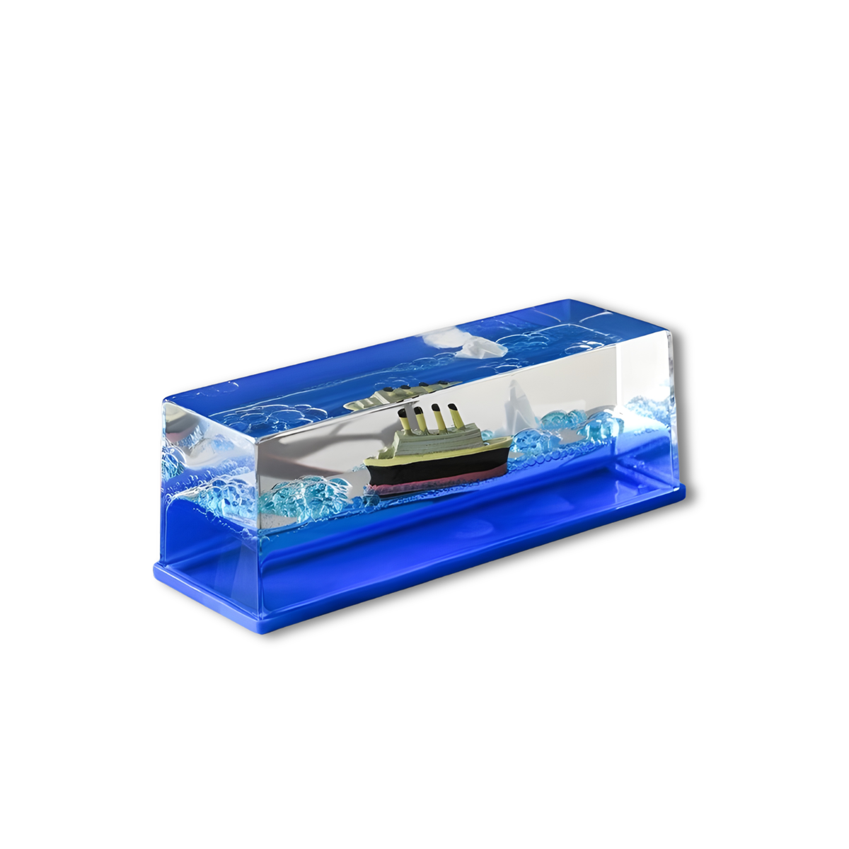 Mavi Su Akvaryum Şişe Şeklinde Batmayan Titanik Gemi