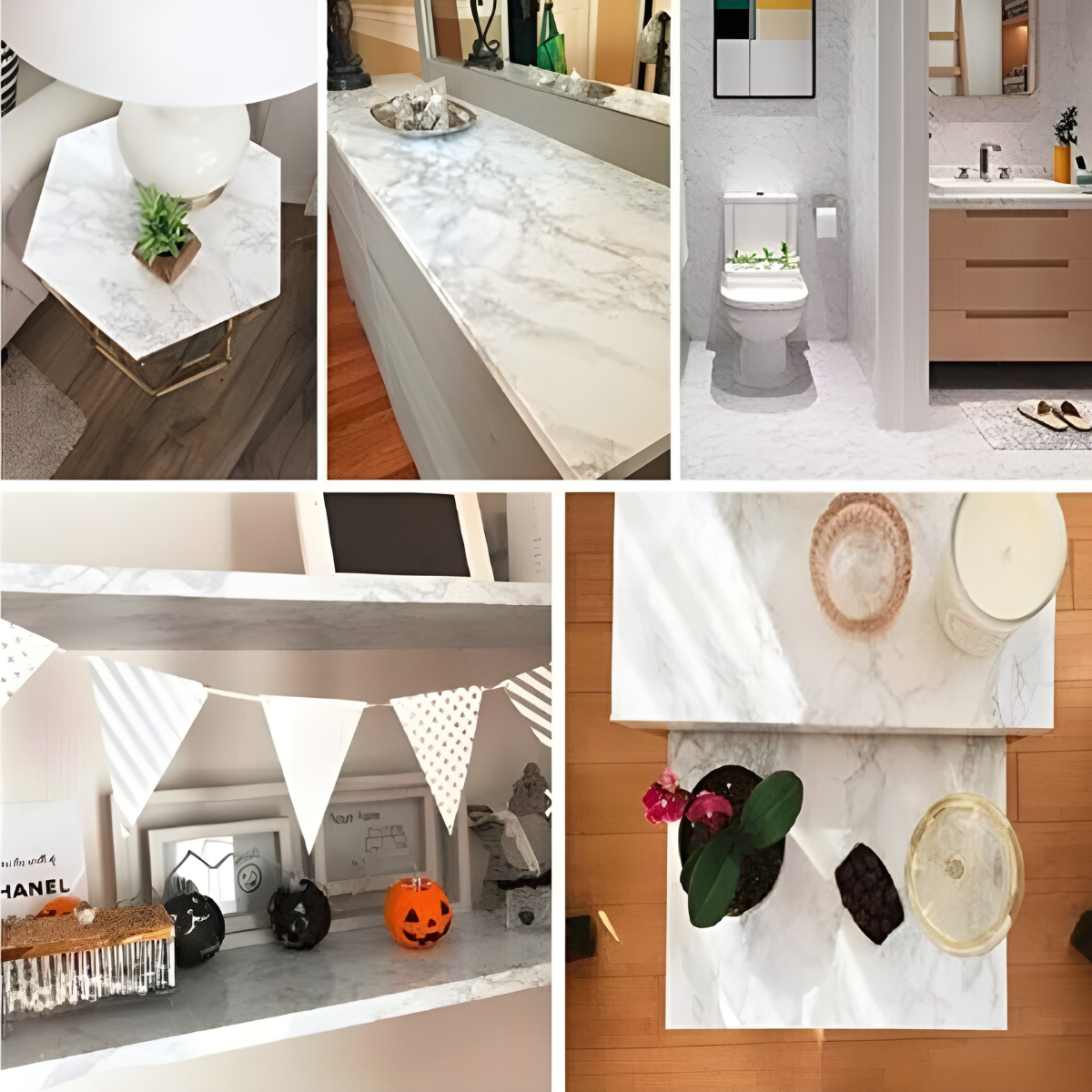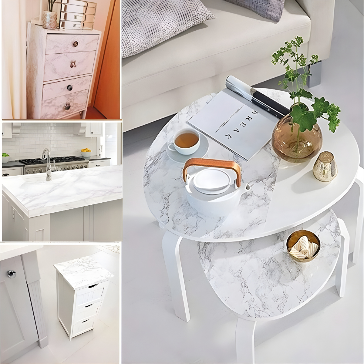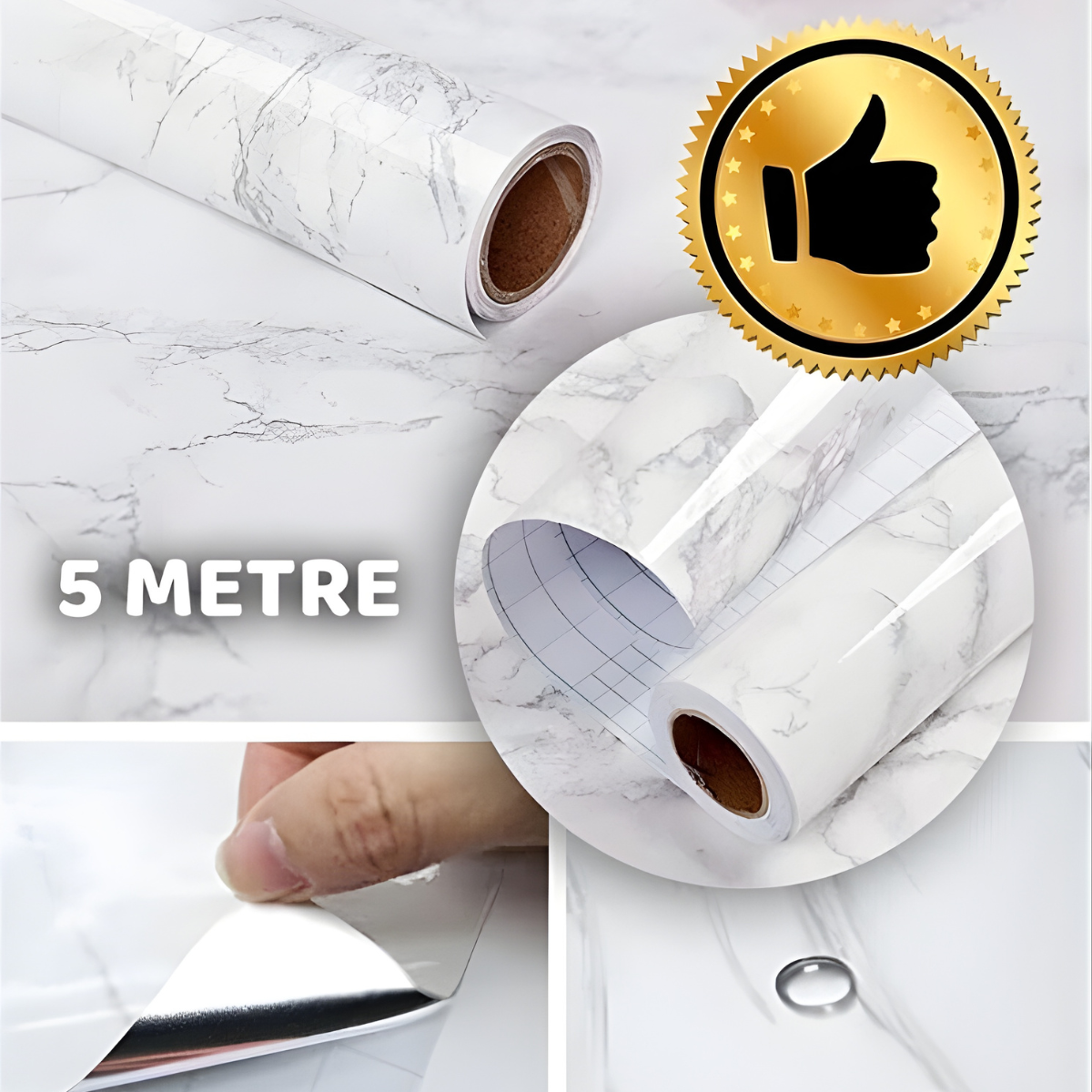 Mermer Desenli Beyaz Folyo Kaplama 5 Metre Tezgah Dolap Mutfak Kağıdı Yapışkanlı
