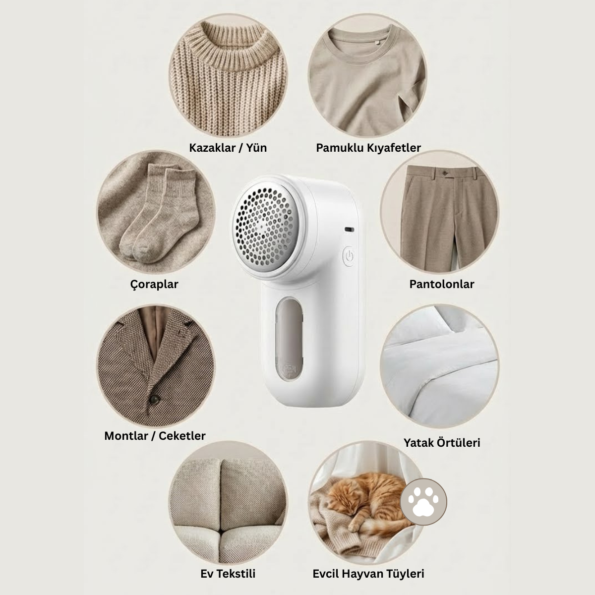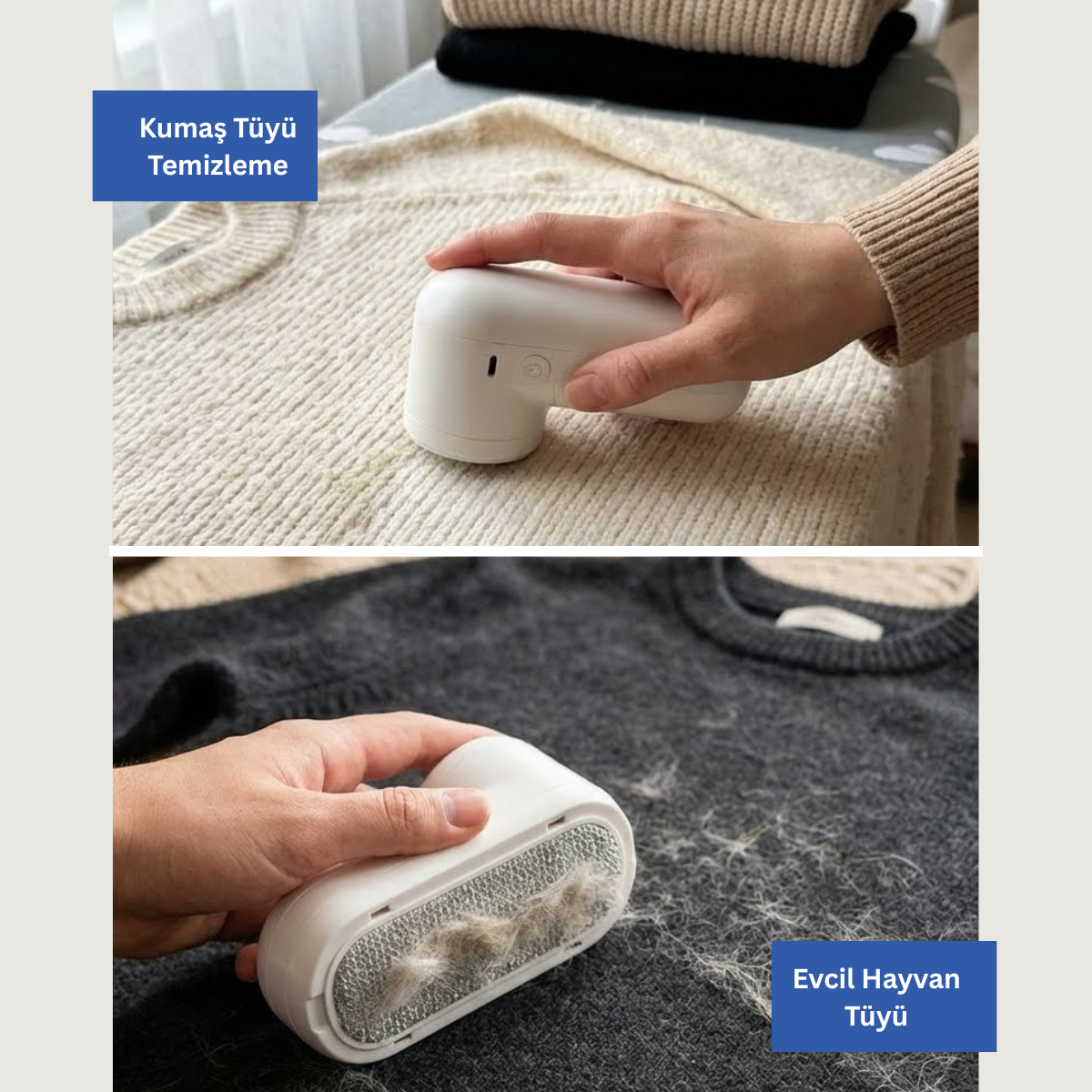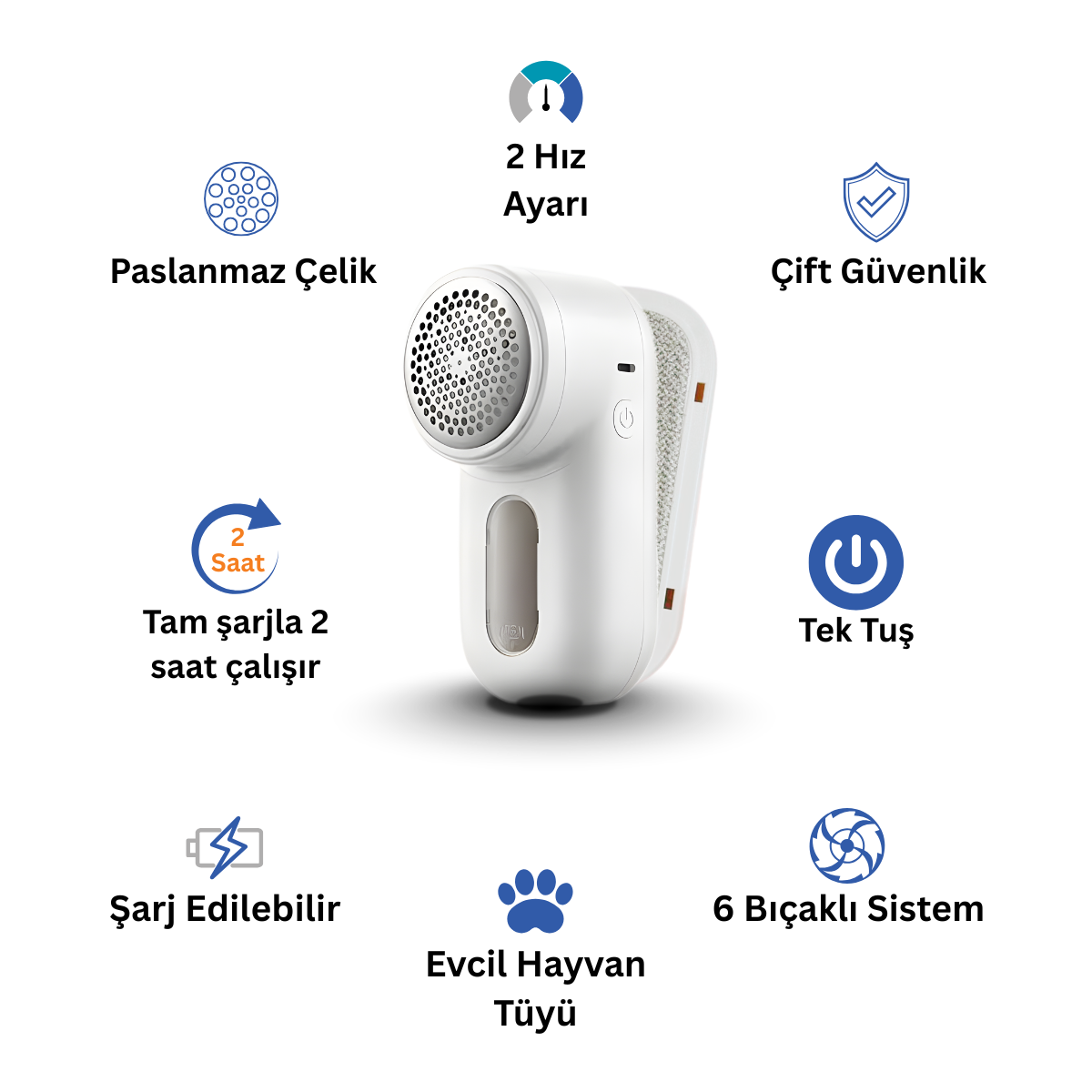Şarjlı Tiftik Temizleyici | Kedi Köpek Tüy Toplayıcılı, 6 Bıçaklı, Çift Korumalı, Hızlı Şarj