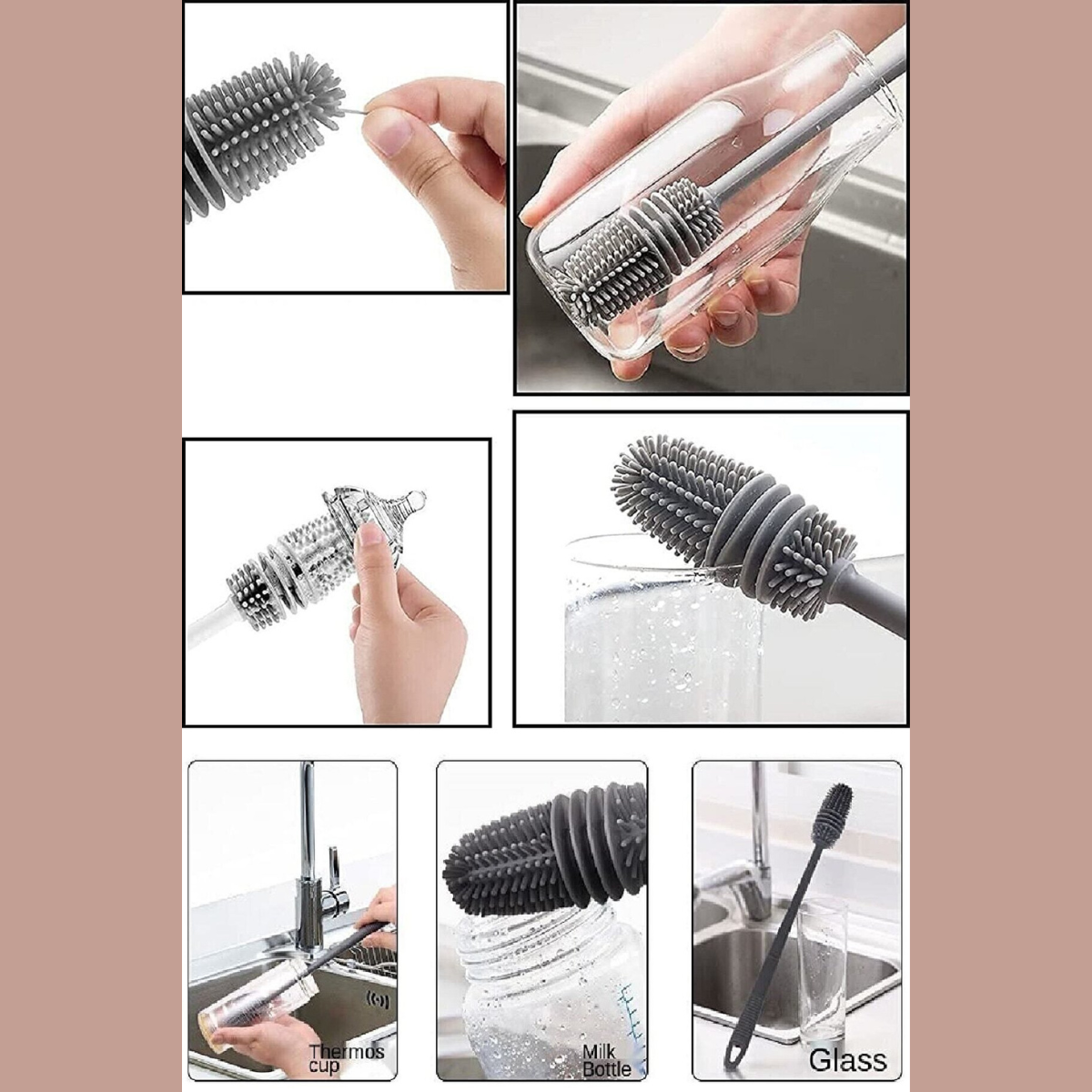 Silikon Fırça Matara Biberon Emzik Temizleyici Kavanoz Termos Suluk Yağ Şişe Temizleme Fırçası